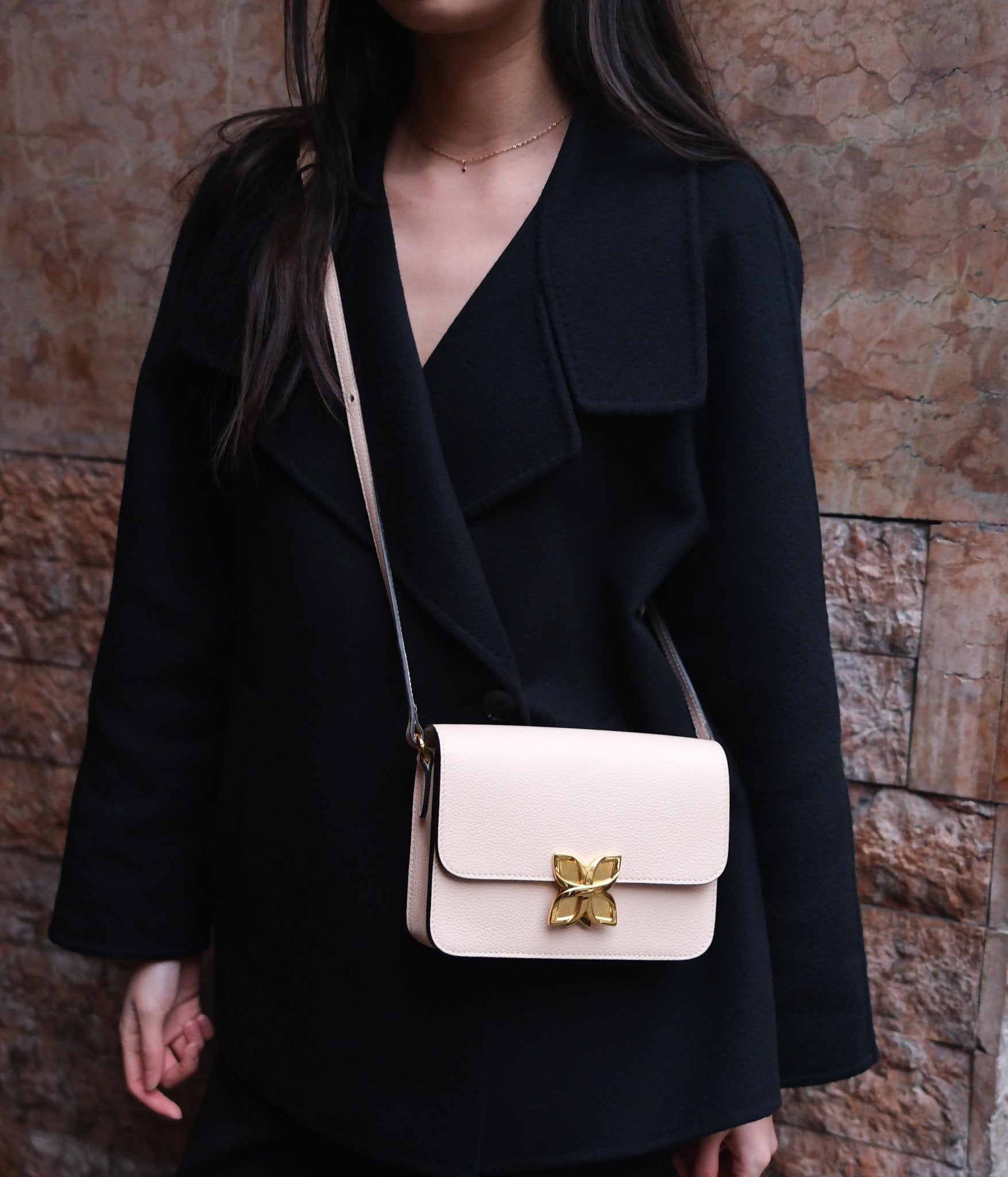 Its Light Pink hue, tender and radiant, brings a refined touch of softness to an elegant wardrobe. For a natural and sophisticated look, pair it with neutral tones like sandy beige, off-white, or pearl grey. For a bolder, more contemporary contrast, opt for deeper shades such as burgundy, navy blue, or forest green, which will enhance its subtle brilliance.