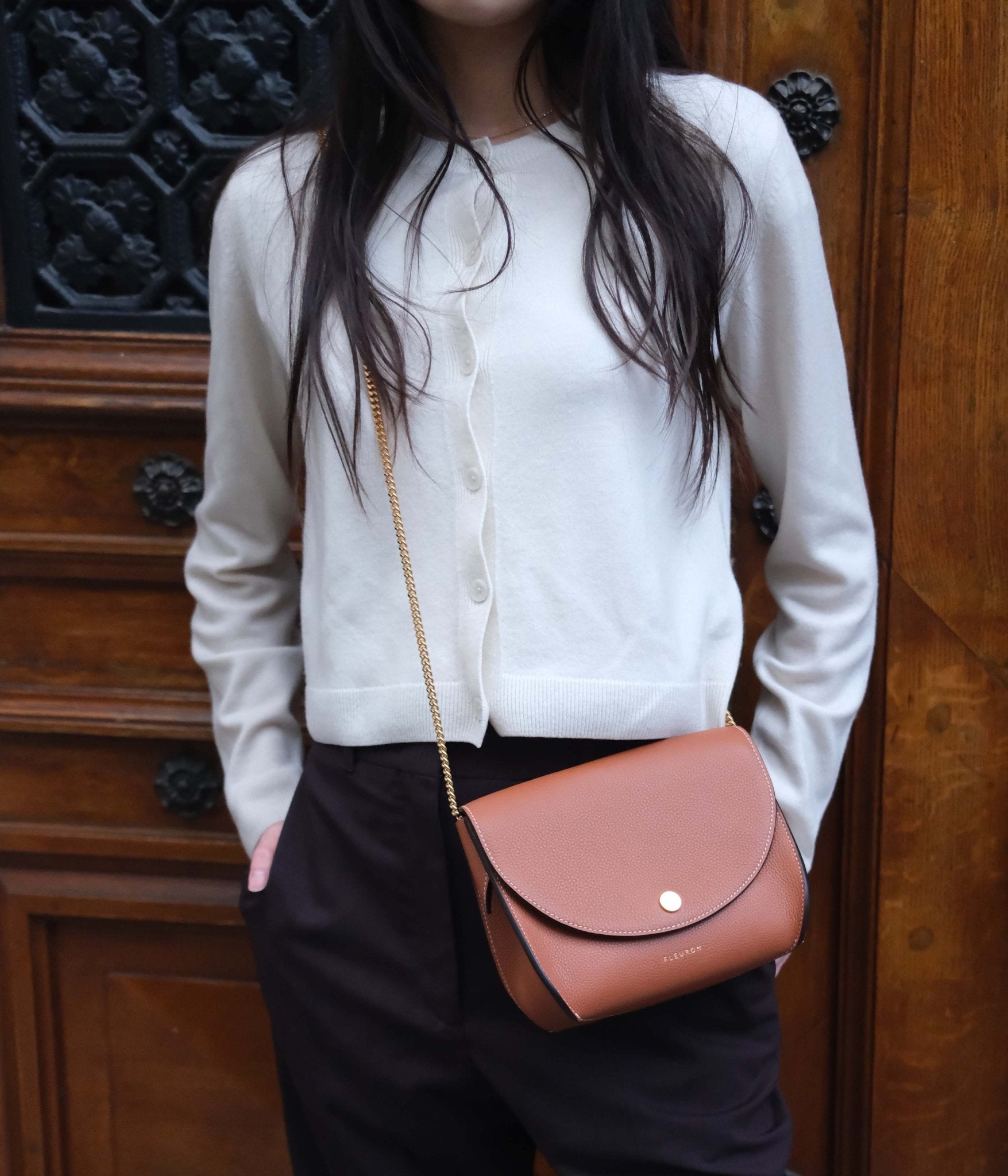Let yourself be charmed by the natural appeal of the Mini Magnolia in Caramel, a warm, luminous shade that adds a touch of soft character to any outfit. Handcrafted in our Italian workshop, this crossbody bag reflects the excellence of Italian craftsmanship, combining clean lines with discreet everyday functionality.