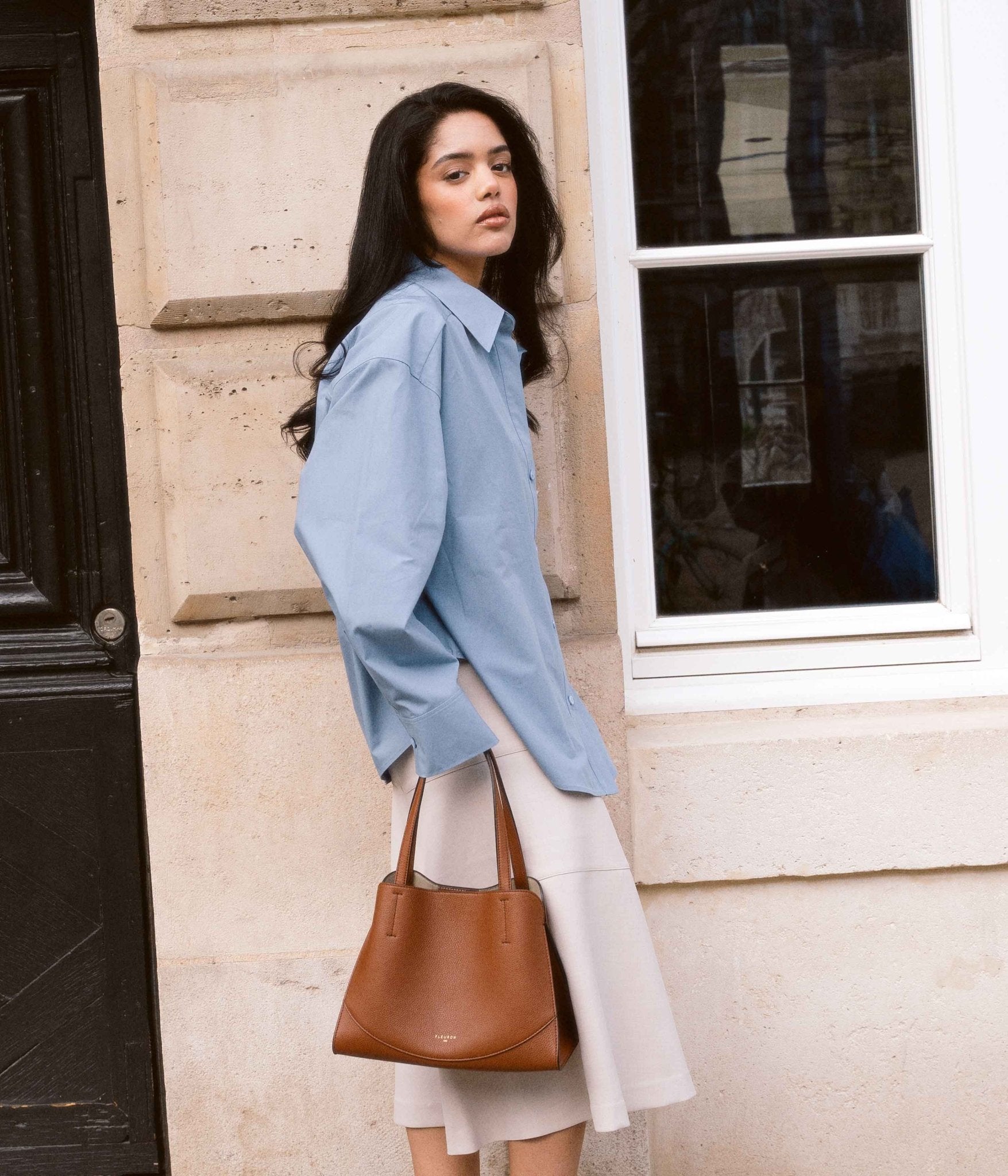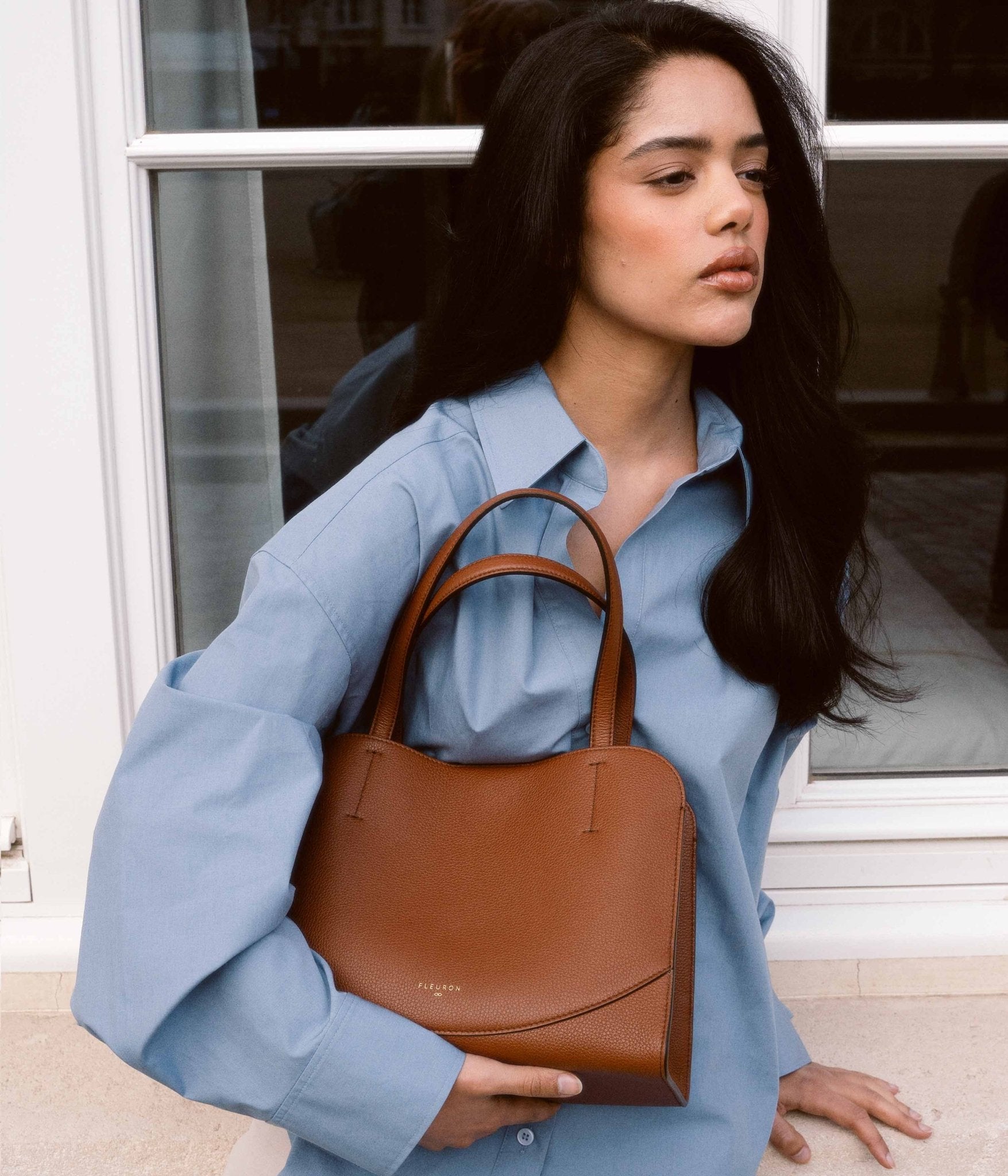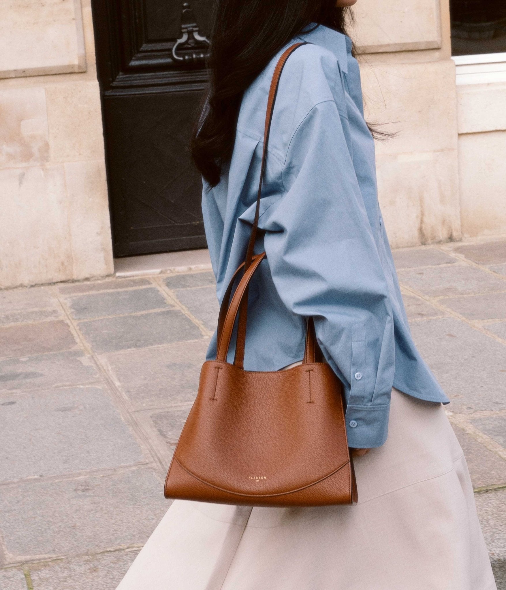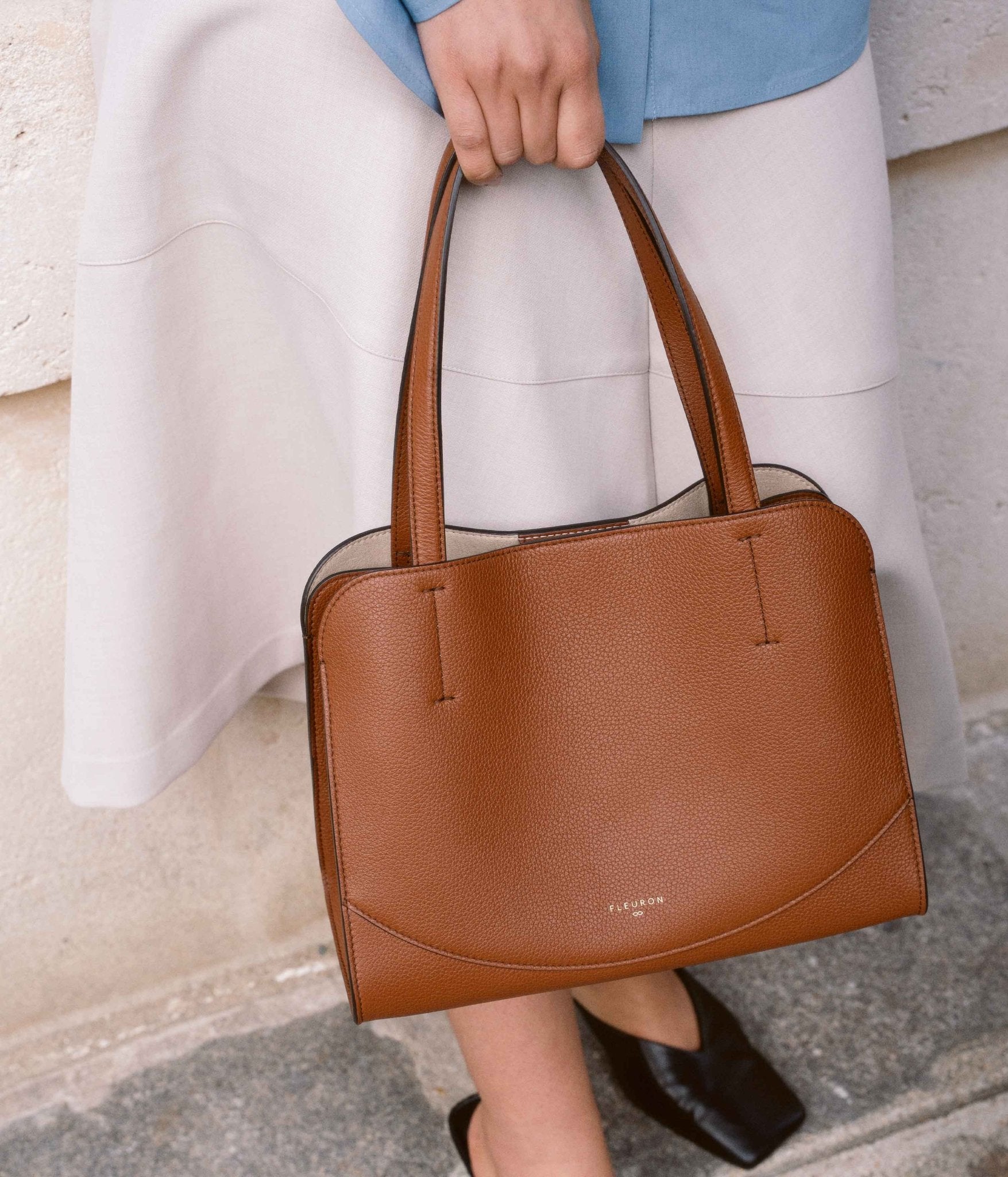 The Mini Oak in Marron grained calfskin embodies warm, authentic elegance in a structured yet spacious format, designed to accompany your days with ease and sophistication. Its balanced silhouette reveals a generous interior, ideal for carrying your daily essentials while maintaining a clean, refined line.