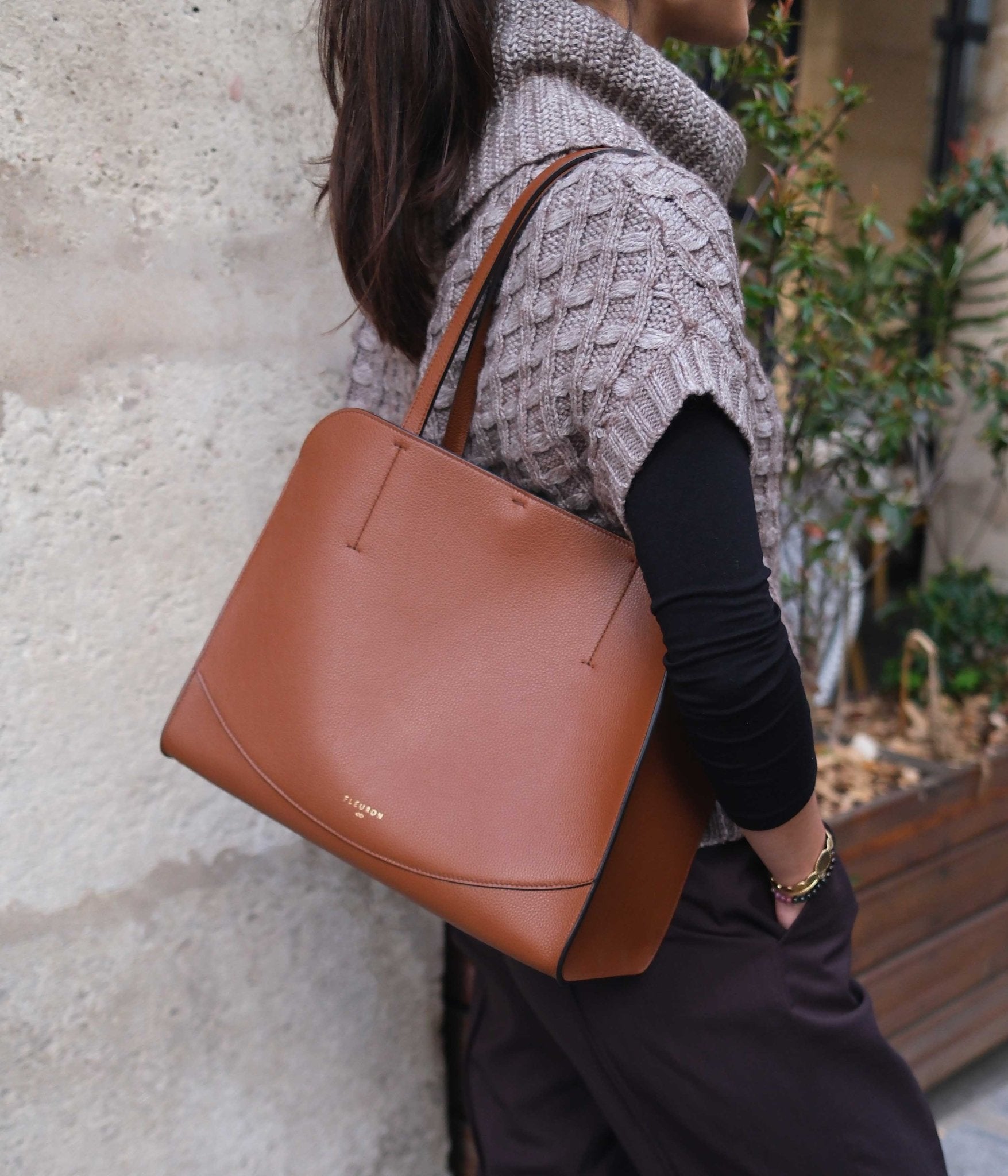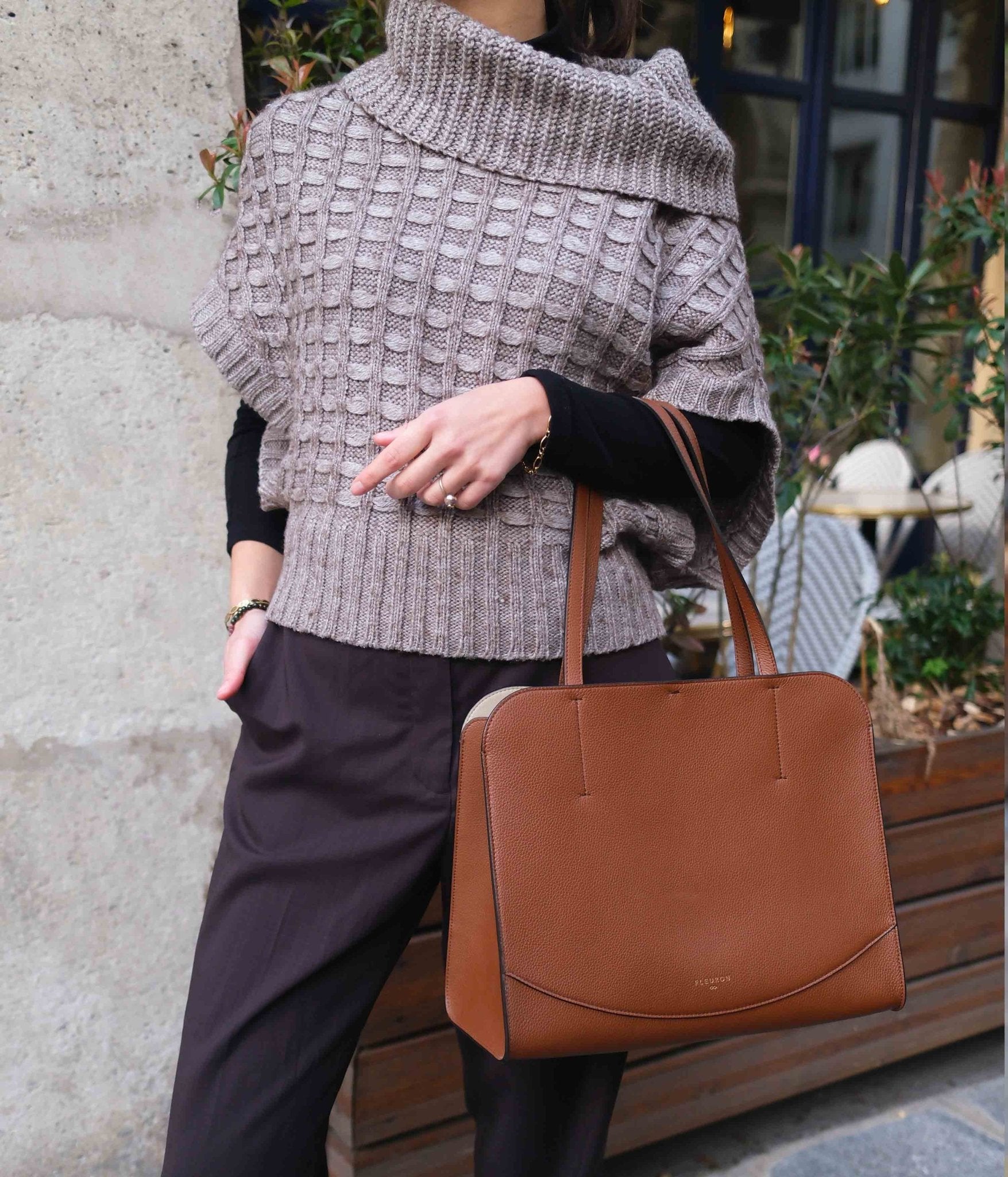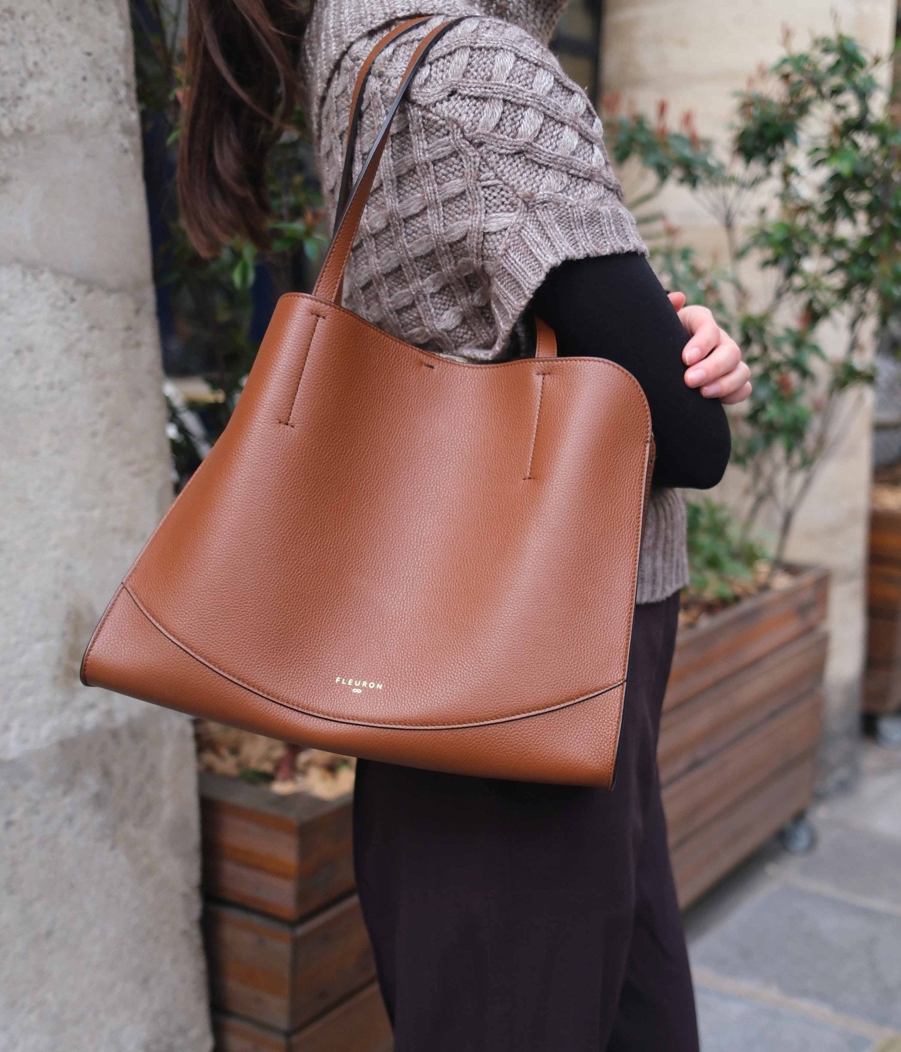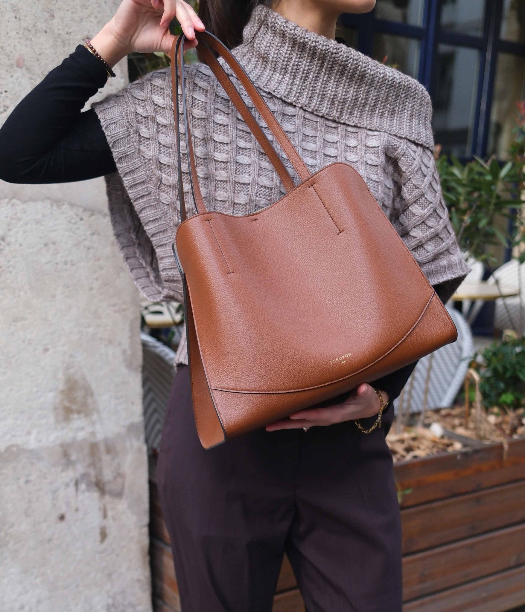 The Medium Oak tote in Marron combines warmth, sophistication, and practicality, establishing itself as a key piece in the feminine wardrobe.