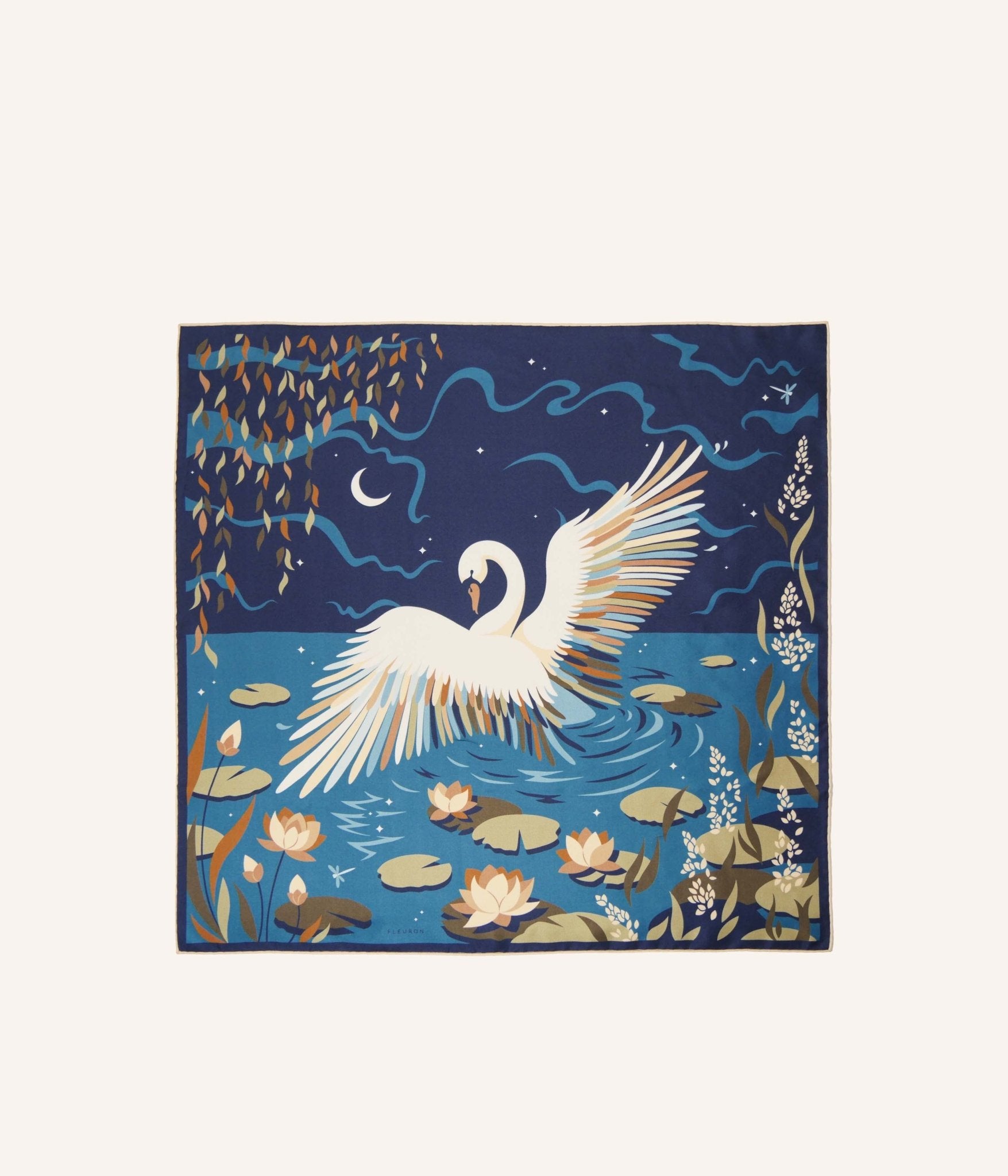 Crafted in Lyon from 100% silk twill, "La Nuit" is woven using a traditional twill technique, whose diagonal weave enhances colour depth while giving the fabric a fluid, lightweight feel. A noble and enduring material, silk is naturally soft to the touch, cool in summer and warm in winter, making this carré a versatile companion throughout the year.