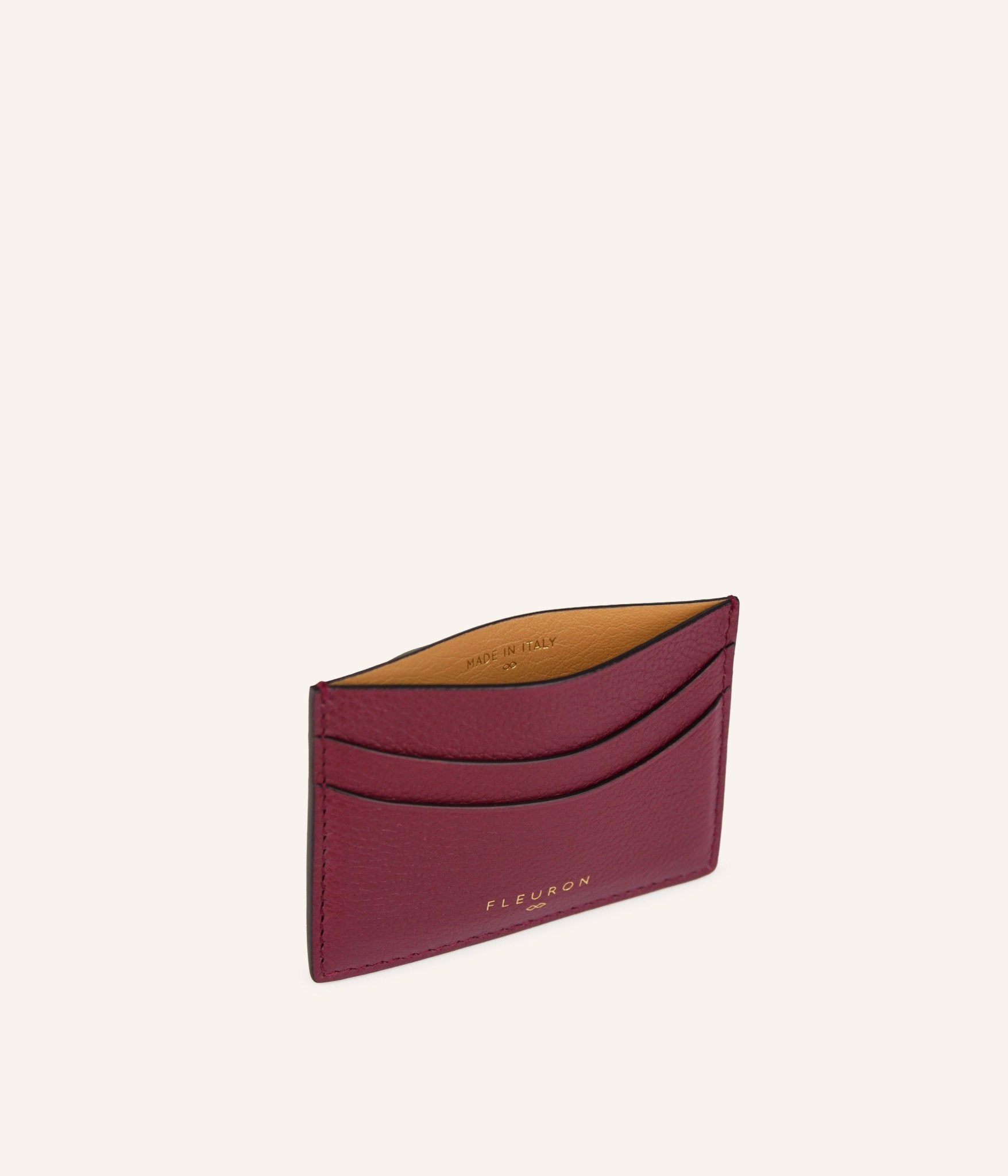 To carry just the essential cards, with a reminder of the feminine curves of the Magnolia bag. Our Noa Bordeaux card holder, thanks to its compact shape, fits easily into a jacket pocket or mini bag. Handcrafted in Italy in grained calfskin, this card holder is the essential accessory for organizing your essential cards.