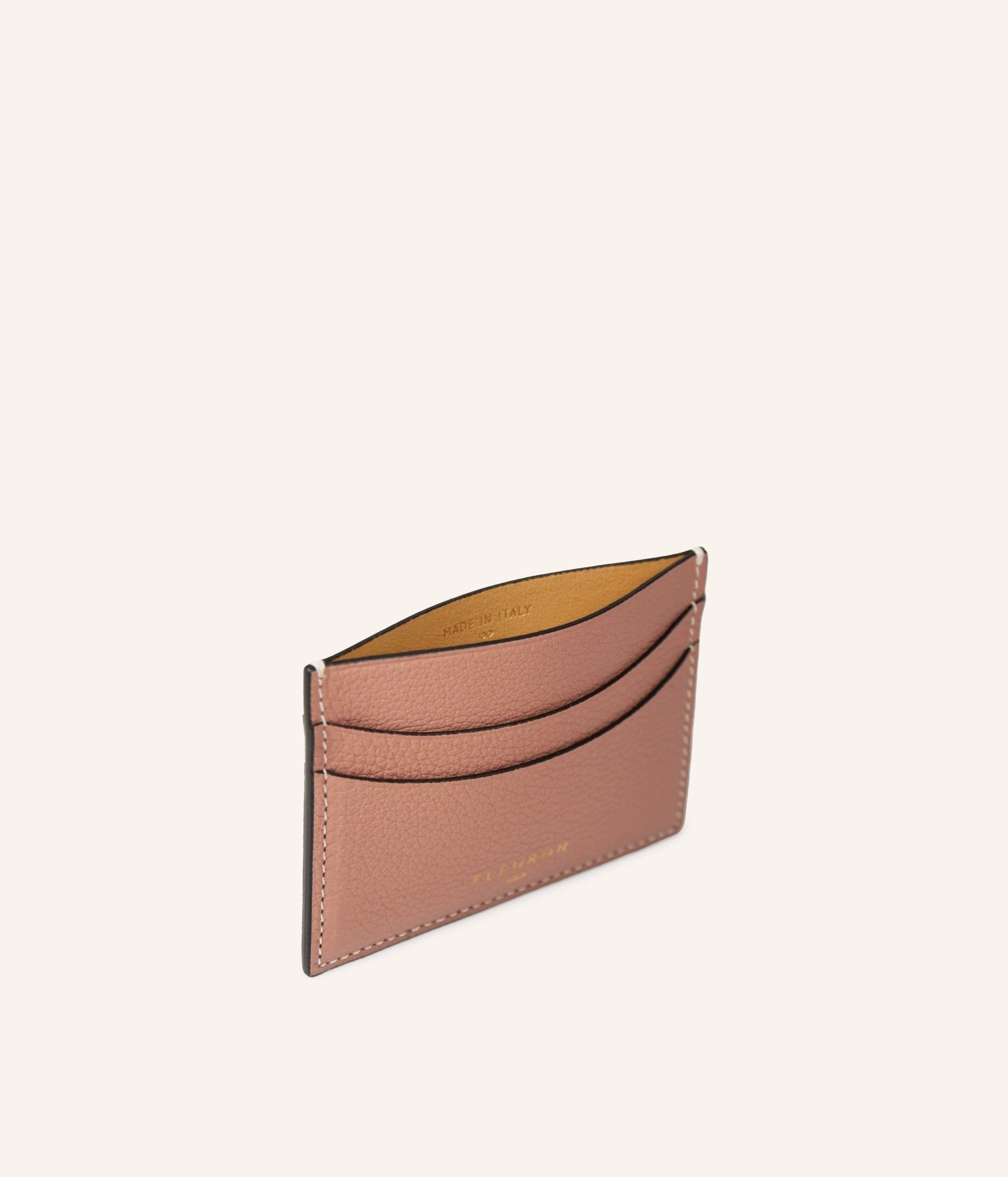 The Noa cardholder in Rose Terracotta, with its soft and warm shade, fits perfectly into any mini bag thanks to its practical size. Handcrafted in Italy from grained calf leather, it is the perfect accessory for keeping your essential cards with refinement and style.
