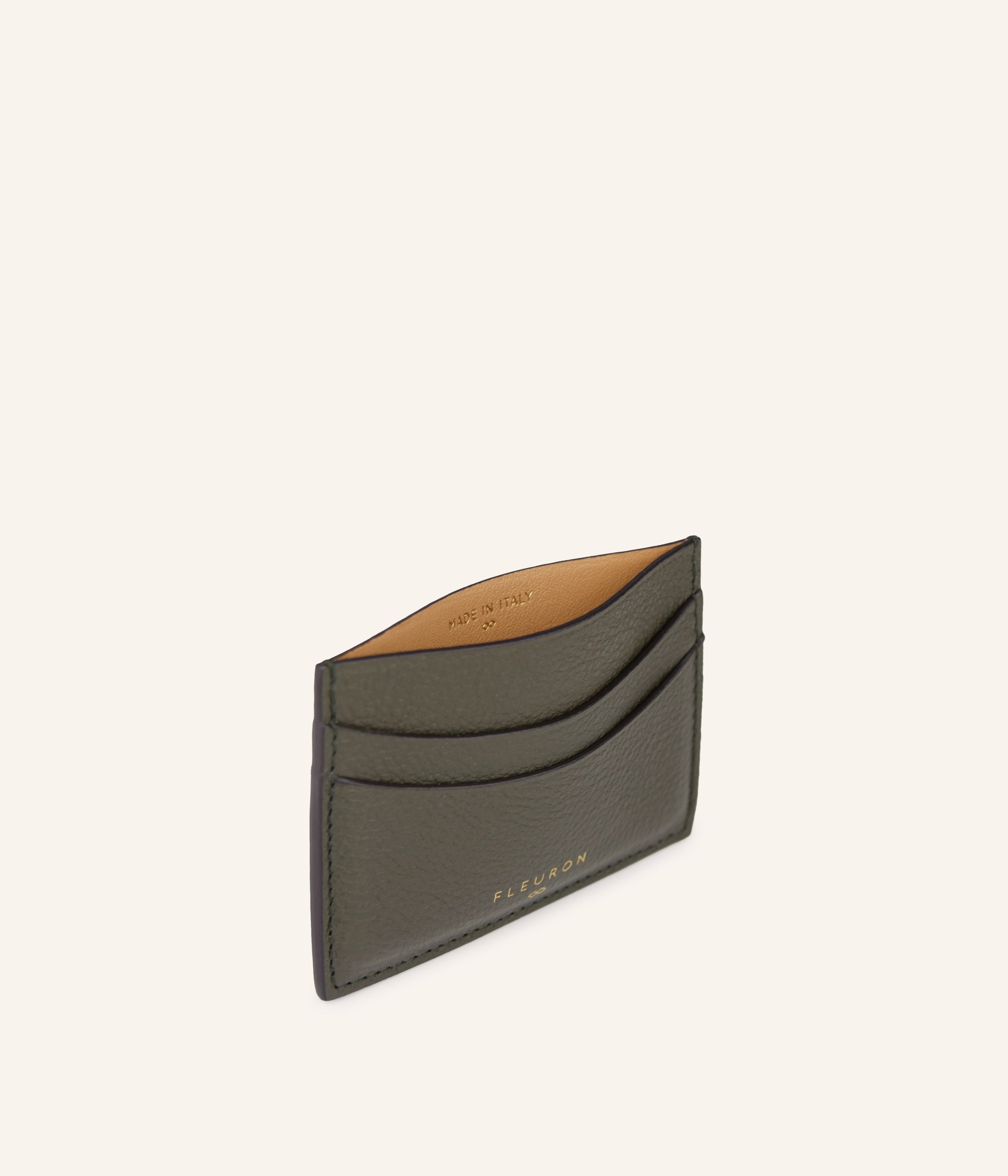 The Noa Vert Olive card holder, thanks to its compact format, fits easily into all mini bags. Handcrafted in Italy in grained calfskin, this card holder is the essential accessory for storing your most important cards.