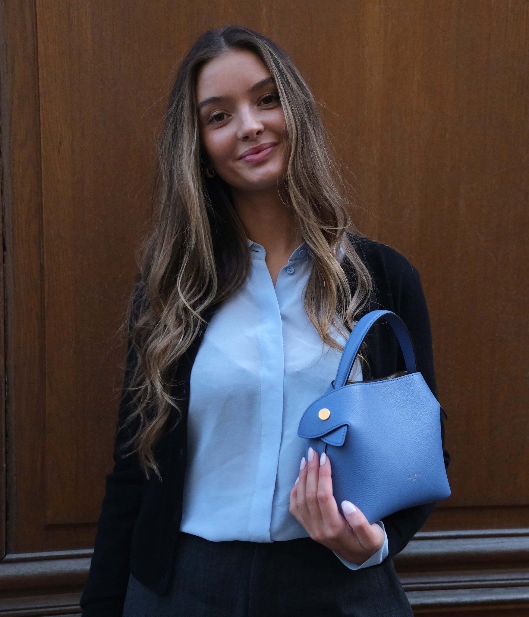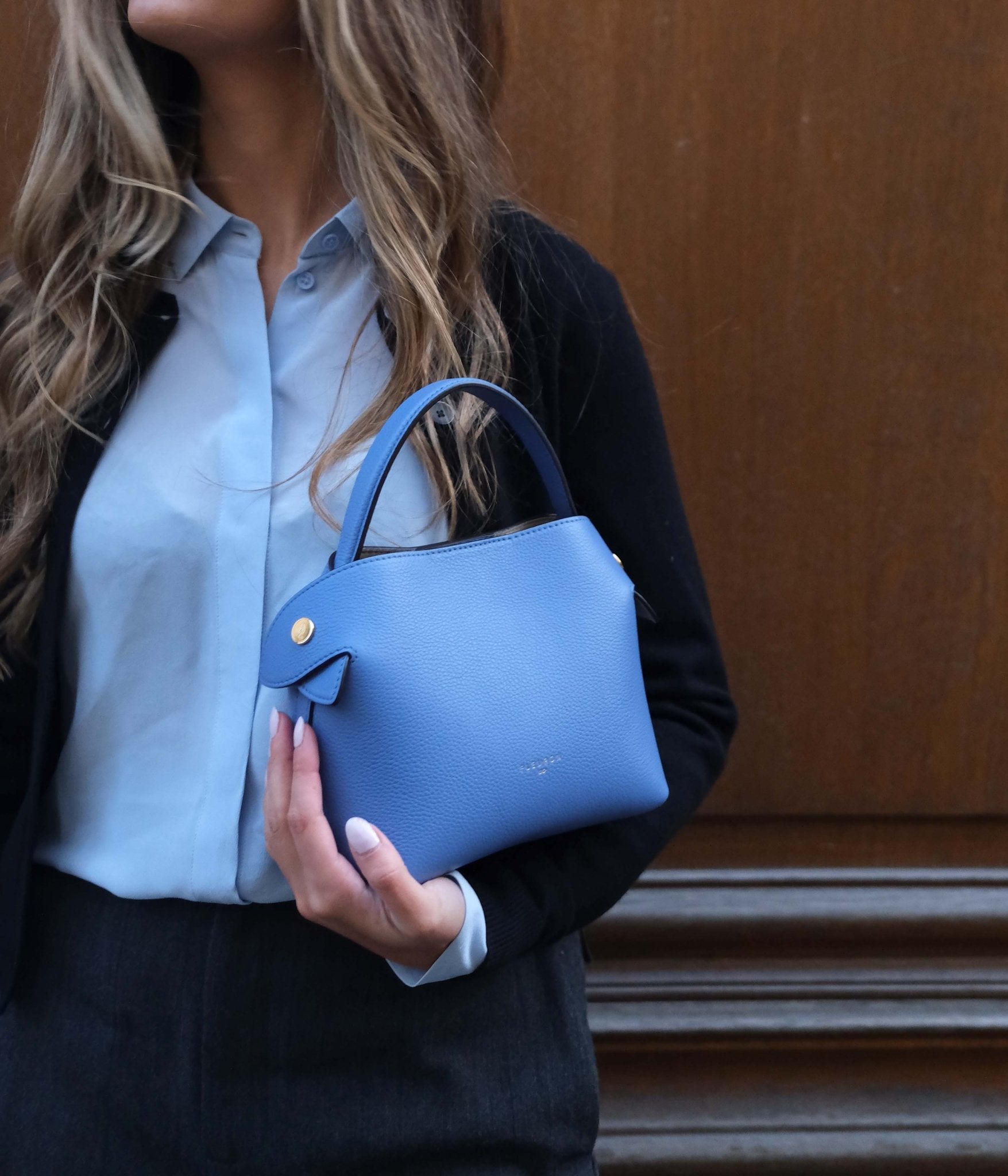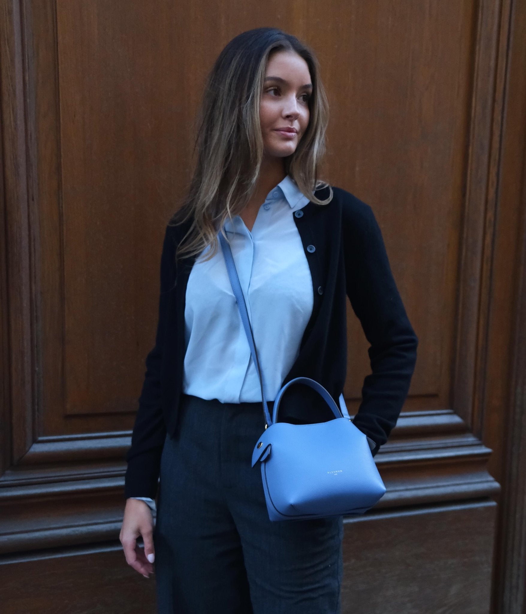 The Mini Swann in Grained Calfskin Jeans brings a modern, luminous touch to any outfit. Its soft yet deep blue tone pairs effortlessly with neutrals like ivory, beige, or light grey, and creates a contemporary contrast when styled with pale blues or brushed metal accents.