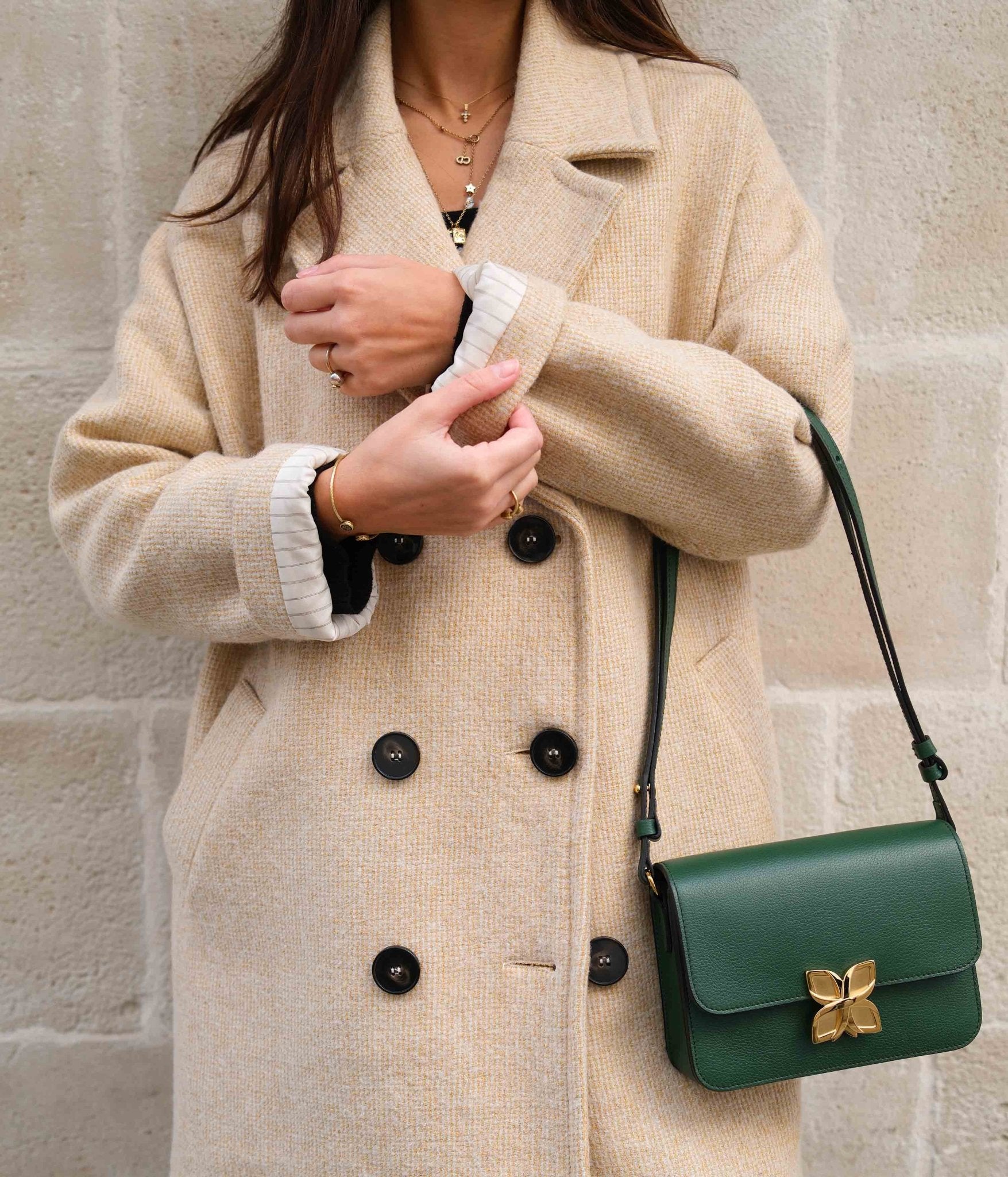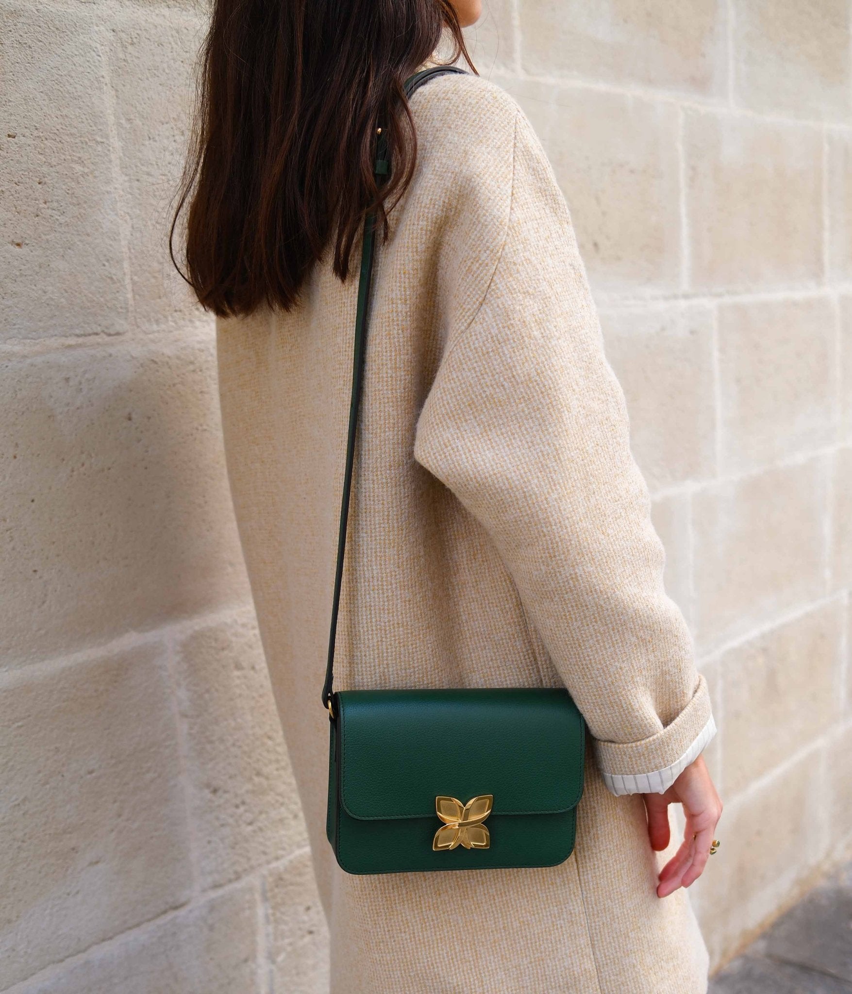 Its deep, natural Vert Sapin pairs beautifully with neutral tones like ivory, beige, or light grey for a harmonious, sophisticated look. For a bolder and more contemporary contrast, it also complements shades like burgundy, midnight blue, or camel, enhancing the richness of the green.