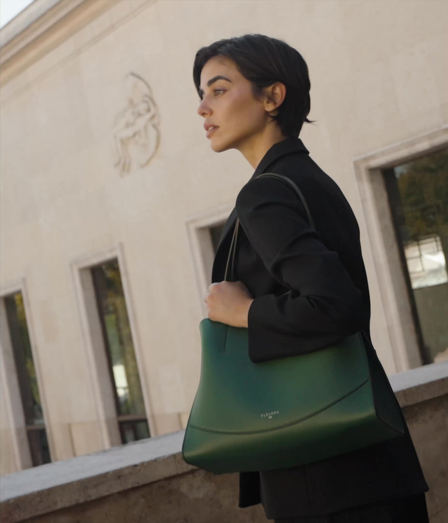 The Medium Oak tote in Vert Sapin stands out as a contemporary essential: a statement piece that blends depth, modernity, and timeless elegance.